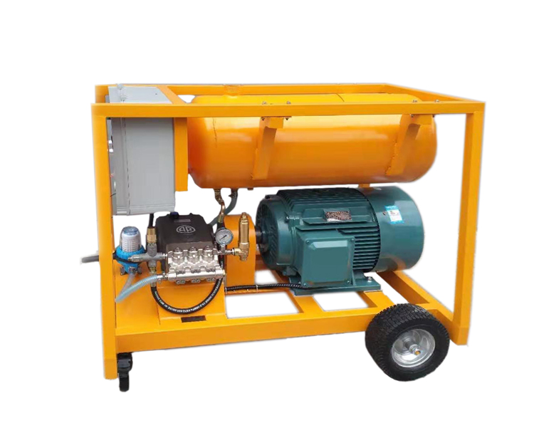 高壓水槍?zhuān)卜Q為高壓清洗機(jī),可用于水泥廠清除窯尾煙室內(nèi)“結(jié)皮”,“結(jié)圈”或窯頭“雪人”。
